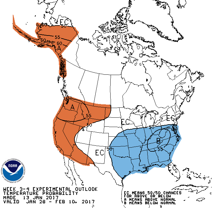 The Friday afternoon updated Climate Prediction Center Day 8 to 14 and the Week 3 to 4 Outlook suggests changes are brewing in the Extended Range. Enjoy the January 'Thaw' while it lasts.
