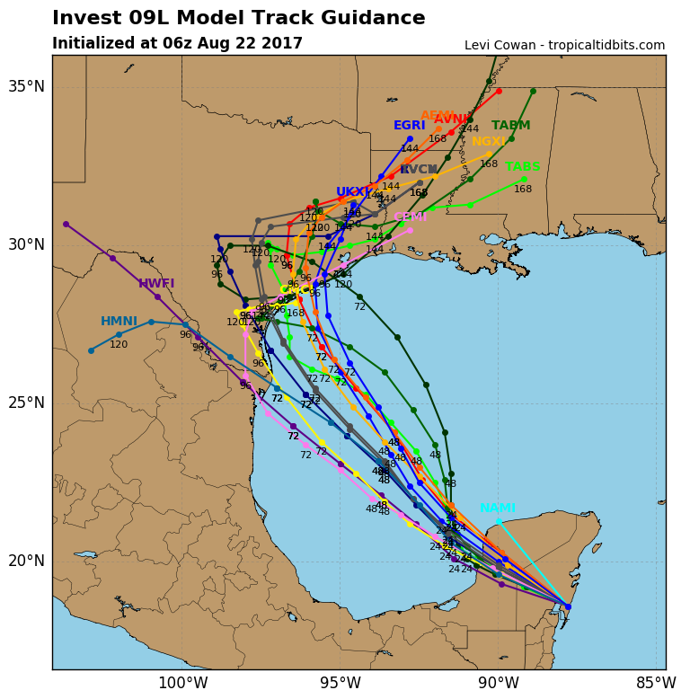 I think at the minimum the nhc should have something of a hook putting parts of the lower Texas coast in the 5 day graph. Also with the continuing trend its about time to not only inject interests along the northern Mexican coast to begin monitoring the remnants of Harvey, but for at least the lower and middle Texas coastal residents to do the same.
