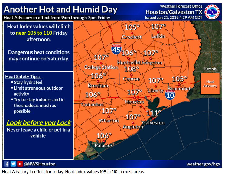 Another hot and humid SE TX day with a Heat Advisory in effect.
