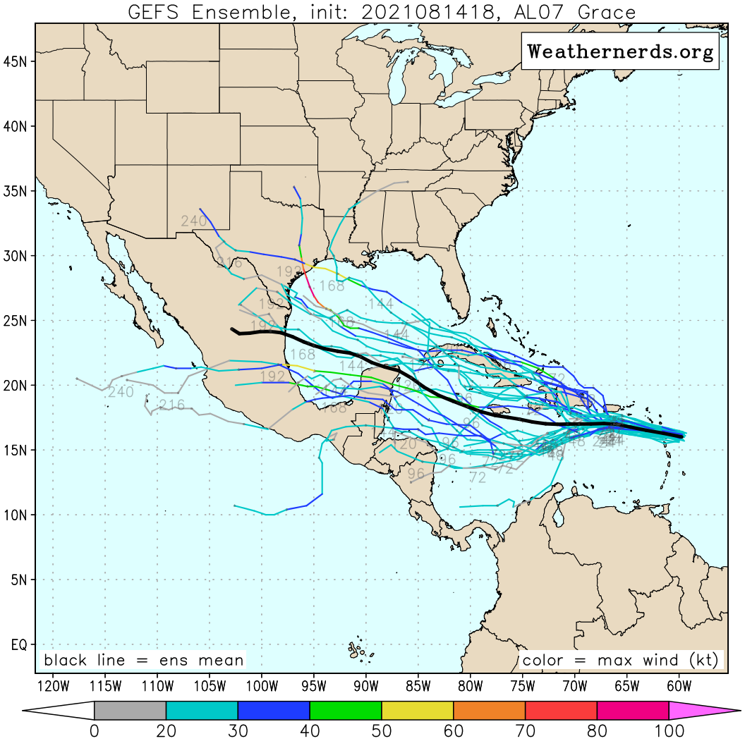 Stratton20 wrote: Sat Aug 14, 2021 7:44 pm 18z GEFS ensembles, I know its still early, but I got a bad feeling about Grace.....