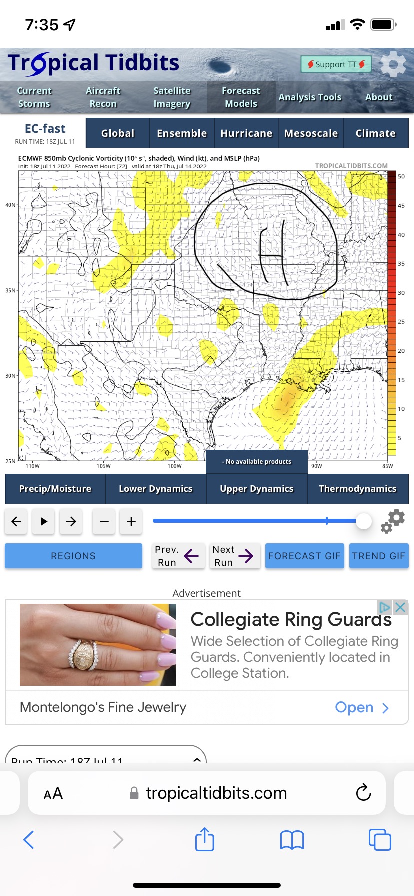 The steering pattern is going to be a headache for the gulf system as its expected to just meander around or even stall out for a few days, here is the 18z Euro run, has what appears to be a mid level ridge building to the north of the system, that would force the system westward, while the most likely scenario is a Louisiana or florida “landfall”, this run does raise an eyebrow