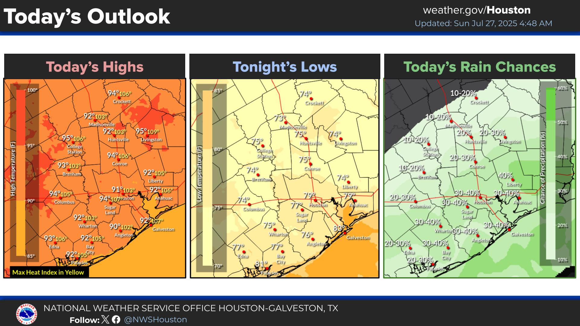 Houston (IAH) 77 97 78 95 / 0 10 10 30