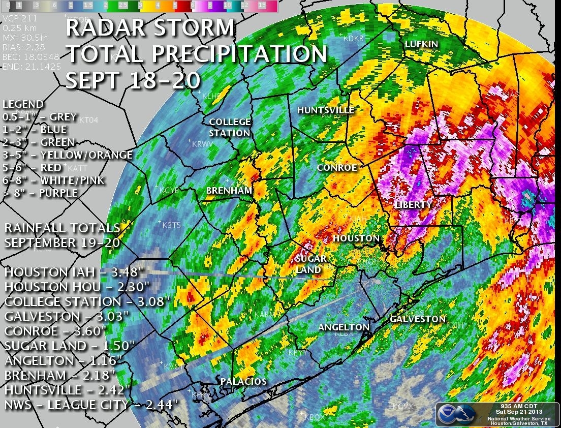 3.62" Here IMBY in Beaumont, but as you can see from the total precip map above just east of Beaumont over in Orange county and Liberty county are the winners of the most precip from this event. Wish I had more, but with 3.62" in the bank, I'm not complaining! Also looks like almost everyone had decent rains. 3" looks fairly common. Not too shabby!