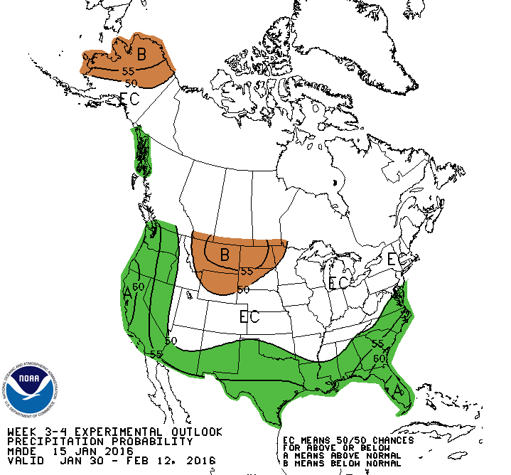 The Friday Experimental Climate Prediction Center Week 3 and 4 Outlook suggests our Region will be colder and unsettled as we end the month of January and begin February.