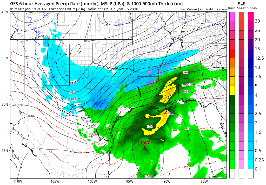 The 12Z GFS is a bit more in line with the 00Z Euro in dropping the snow chances for central and SE TX next Tuesday. It just doesn't look like the airmass will be cold enough for any snow much south of the Red River.