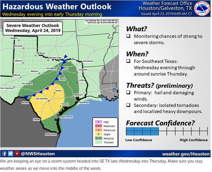 Another round of severe weather and heavy rainfall will move across SE TX Wednesday evening into Thursday morning.