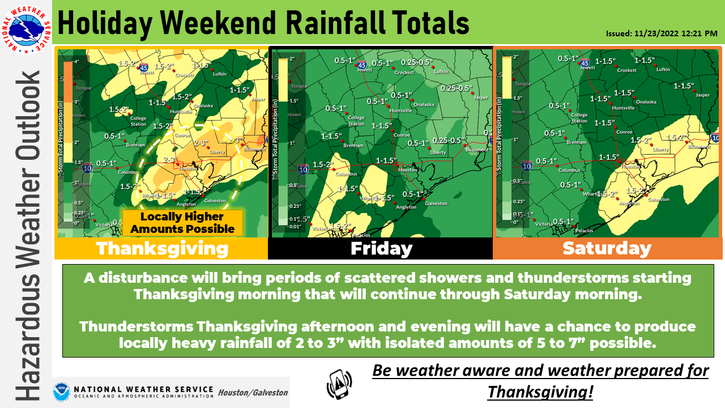 Heavy rainfall may lead to street flooding and rises on area creeks/bayous.