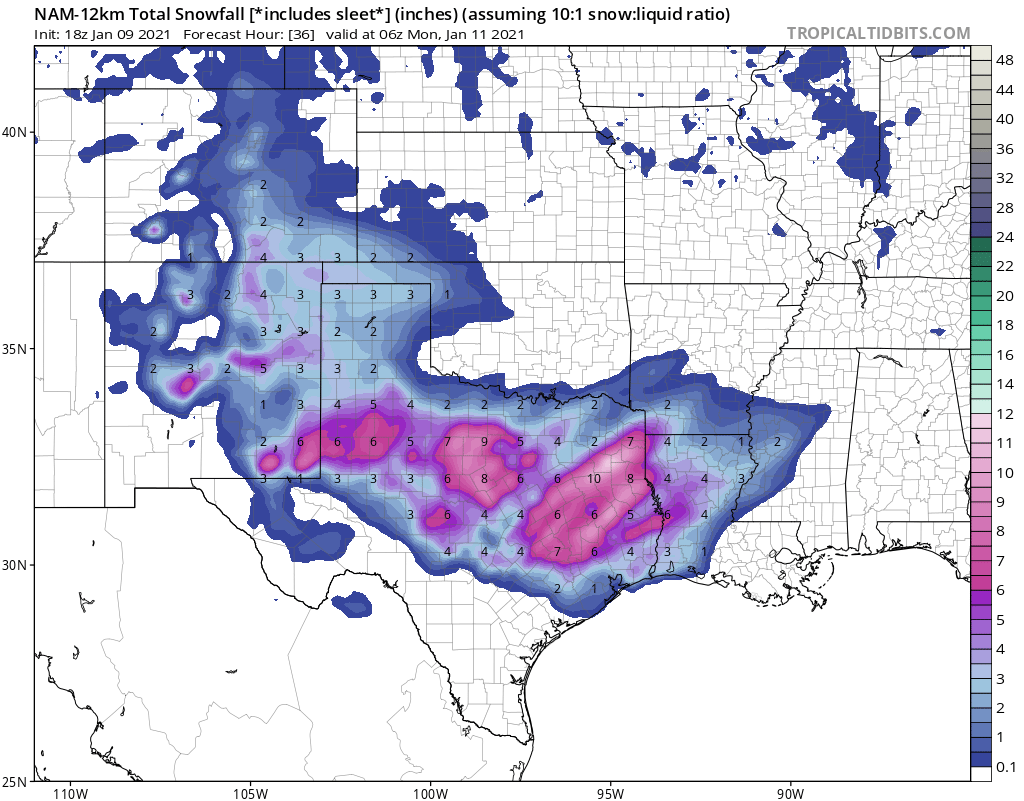 Kingwood36 wrote: Sat Jan 09, 2021 3:26 pm NAM is either going to go down in history as historic or as a major bust with these totals 😂