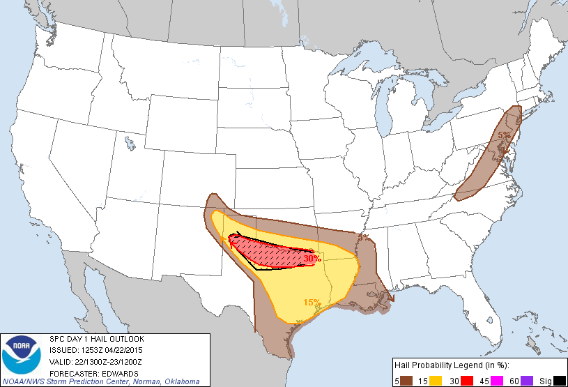 As the Houston-Galveston NWS states "a complicated forecast unfolding today and the rest of week". The SPC most of Central, S, NW, N, NE and E TX in a slight risk area the next 3 days with S Panhandle, NW, N, and NE TX in an enhanced risk this afternoon and evening with severe weather looking more likely in those areas.