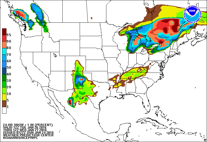 Brrr...that's a chilly wind out there this evening. Looks like the big High Impact Winter Storm is wrapping up quickly. Numerous Winter Storm Warnings have been issued as well as a Blizzard Warning for the Washington DC/Baltimore Area. Looks like some locations along the Appalachian and Shenandoah Range to just S of Philadelphia could see up to 30 inches of snow, if not more. Locally, windchill values will be in the mid/upper 20's inland to near 30 along the Coast.