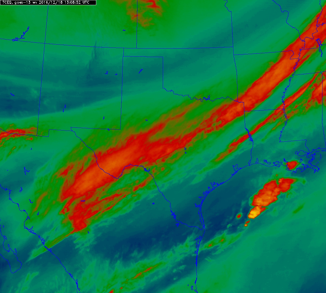 Water Vapor imagery suggests a noisy sub tropical jet overhead extending back to Hawaii where a Kona Upper Low is tapping tropical moisture S of the equator. I see a below normal temperature regime throughout the coming week with at least 2 fronts possibly passing across Texas. Looks like the next front arrives on the 22nd/23rd and the next shot of colder air arrives Christmas Eve/Christmas Day depending on which model you choose to believe.