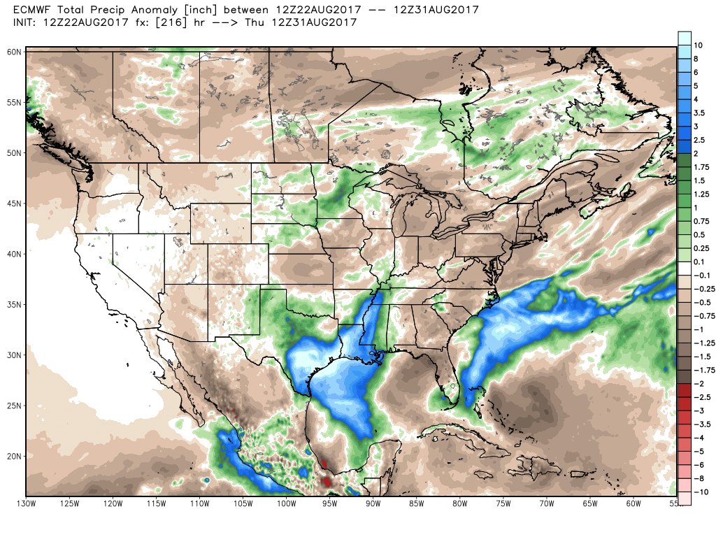 12Z ECMWF rainfall totals through 216 hours from Ryan Maue via Twitter.