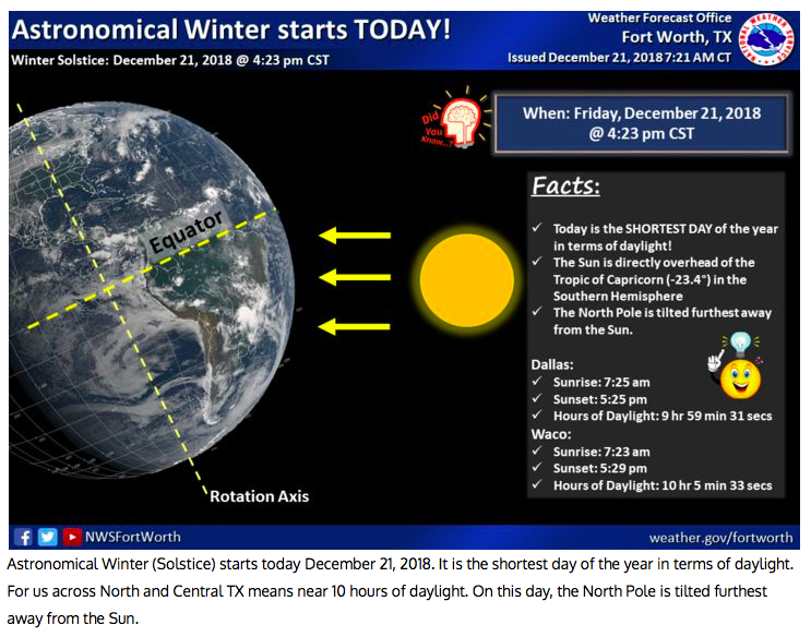 The Winter Solstice arrives this afternoon as we enjoy beautiful SE TX weather for the first day of the 2018-2019 Winter.