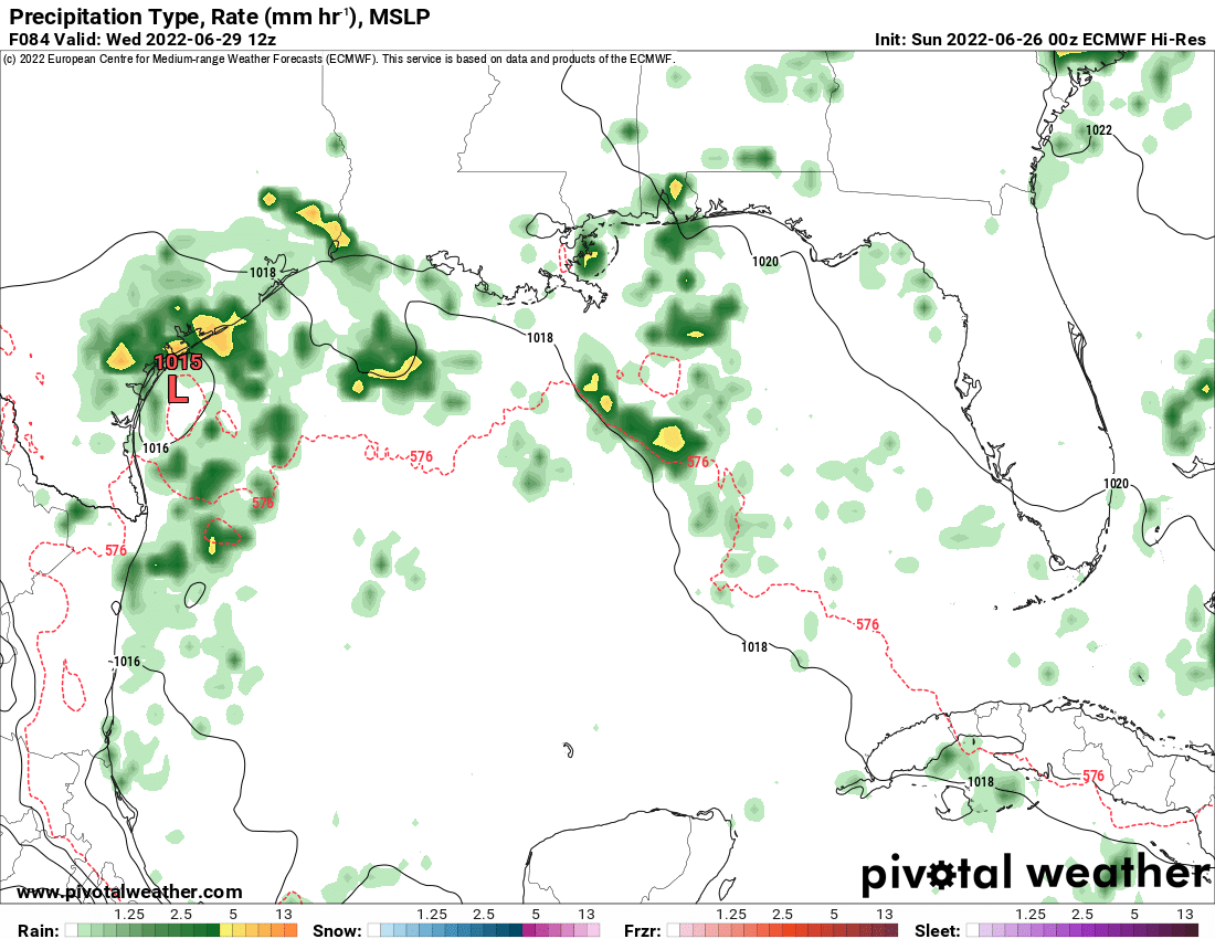That area is another area of low pressure in the eastern gulf models kinda have that low merging with the piece of energy that moves off the coast of Louisiana on Monday and consolidating into one single area of low pressure.So it makes since that they would have it marked. But the real catalyst will be the energy that moves offshore with the frontal boundary. I think one of the reasons why the EURO doesn't show development is because it never consolidates those two areas of vorticity until the system is right at the coast.Stratton20 wrote: ↑Sat Jun 25, 2022 7:25 pm Don this is a bit confusing from the 8 pm NHC update but they already have the disturbance in the gulf I think, definitely weird