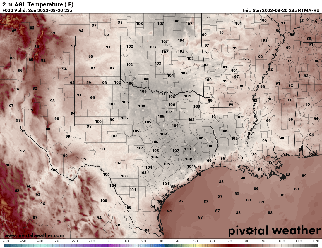 The actual high temp for Bush IAH for today was a record-breaking 108 degrees...