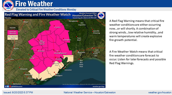 Red Flag Warning in effect for all areas from 1000am to 900pm today (except Matagorda, Brazoria, Galveston, and Chambers Counties).
