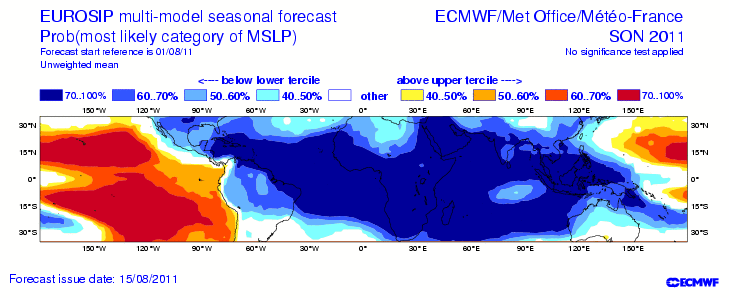 The new Eurosip seasonal forecast is out for September, October and November. The much lower pressures across the Atlantic, Caribbean and Gulf certainly do raise an eyebrow...