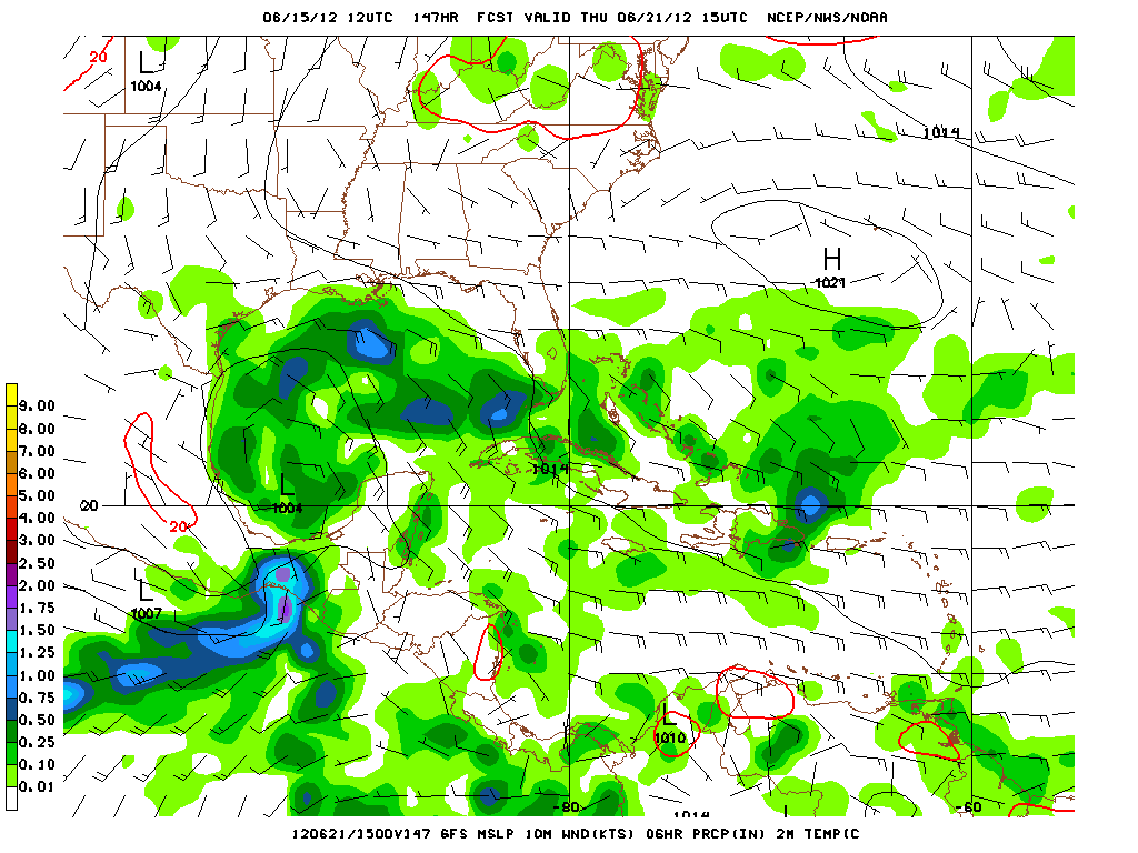 The Euro/Canadian and UKMet are suggesting a broad surface low will develop in the medium to longer range as well. The Euro suggests the upper ridge will build back E over the area of disturbed weather while the Canadian is hinting a more closed surface low heading toward the Louisiana Coast. The UKMet develops a broad low in the Bay of Campeche. The GFS looks to bring that low further N into the Corpus Area. With that increase in guidance output suggesting some form of tropical mischief developing, we'll need to closely monitor future guidance as we are now beginning to get into the range that gives a bit more confidence that something may in fact develop.