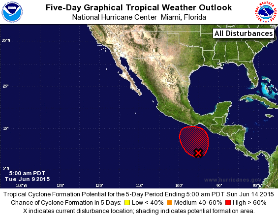 The National Hurricane Center has increased chances that 94E will develop into a tropical depression to 80% within the next 48 hours.