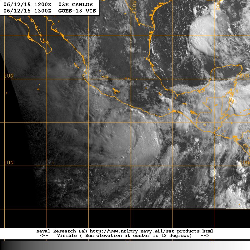 located near latitude 16.7 North, longitude 101.8 West. Carlos is