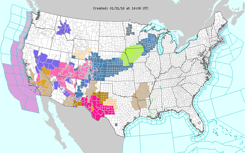 That is true, srainhoutx. There is also a fire weather danger today in west Texas and stretching into parts of central Texas by Tuesday. It's hard to believe it's there after having the state's wettest year on record ... but NWS offices are expressing concern due to high winds, low humidity, and dead vegetation as a result of it being "winter."