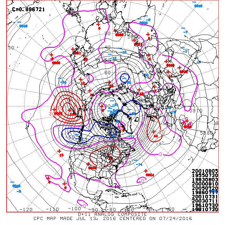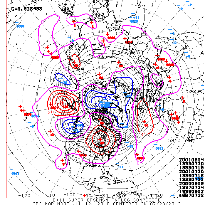 The morning Updated Day 11+ GFS Super Ensembles are suggesting a bit of a pattern change may be developing as we head toward the last days of July. The Upper Ridge that has brought our hot and dry weather is expected to shift a bit toward the Great Lakes/Mid/Upper Mississippi Valley Region bringing a fairly impressive heat wave to the Great Lakes/Ohio River Valley and the NE. As the Ridge shifts East, there are some indications that pressures begin to lower across the Caribbean Sea and the Gulf of Mexico. The ECMWF Ensembles are in somewhat agreement with such a shift, so it will be interesting to monitor the trends as we head into late July. It is noteworthy that the Madden Julian Oscillation Pulse that has assisted in cranking out all of the Tropical Cyclones in the Eastern Pacific finally moves into the Atlantic Basin. If the projected Hemispheric Patterns do develop, we may need to watch the Tropics a bit closer as we steadily head toward Peak Hurricane Season in our part of the World.