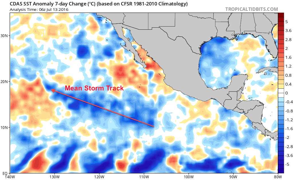 The parade of eastern Pacific storms has caused quite a bit of ocean cooling in the past week @TropicalTidbits