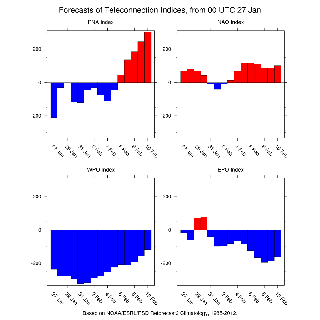 srainhoutx wrote: From a synoptic point of view, here we are sitting at the end of January when a typical PNA pattern is expected within the 3 long wave conceptual model and instead we have a rex block forming in the Pacific. In fact, GFS, GFE Ensemble, ECMWF, Canadian all have a 570dm high setting up over eastern Siberia just west of the Bering Straight by 12Z Wednesday. Just let that marinade for a moment. Now realize that this is outside the 30 year CFSR climate return interval. So this is not a typical winter time pattern and as such the extended forecast may undergo some changes for the end of the week. This holds true for any short waves moving within the flow that could impact the area as well as timing of fronts. Lastly when this block does break down, quite possible to get more arctic airmasses to move into the central and eastern U.S. GFS/ECMWF/Canadian are in pretty good agreement with the next front coming through late Thursday into Friday. There is a chance of showers and then once the front moves through elevated showers may be possible into Friday. This is where the details could change because the models have short wave coming across the southern Plains late Saturday into Sunday which increases warm advection over the front, warm front moving north over night and then a cold front Sunday afternoon as the system moves east. The forecast will hold onto rain chances over the weekend with possible drying conditions going into Monday. Moisture return should not be enough for heavy rainfall nor severe weather since instability will be lacking. Forced ascent from upper level dynamics may support some stronger updrafts Saturday night into Sunday ahead of the cold front but not enough to warrant putting thunderstorms in the forecast. Lastly to squash any rumor of winter weather in the next 7-8 days, temperatures stay above freezing so no worries. Overpeck