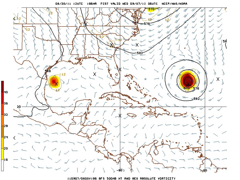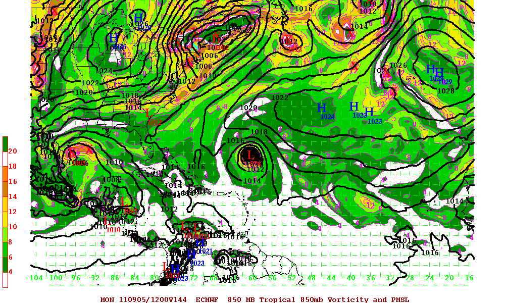 The Euro through hour 144 keeps a possible monsoonal depression down near S TX/NE MX. That model never really strengthens to a true closed low, for what it's worth...