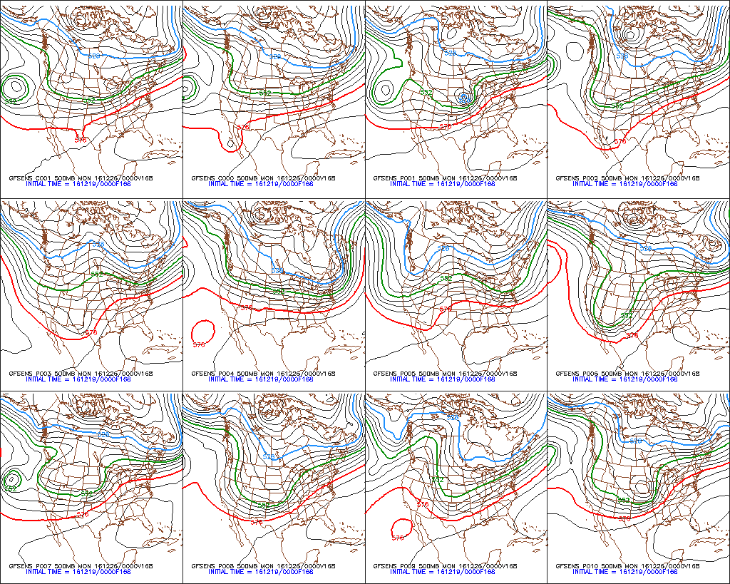 The 00Z GEFS individual ensembles members are all over the place with the upper low ejecting out of the Eastern Pacific and the Winter Storm expected to organize across the Southern/Central Rockies into the Plains Christmas Day. Thus all the uncertainty in a highly volatile upper air pattern. Don't trust the models beyond 2 to 3 days at a minimum... ;)
