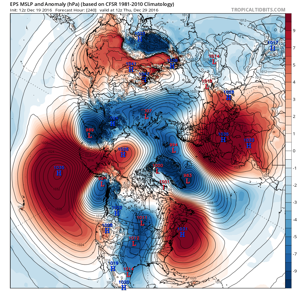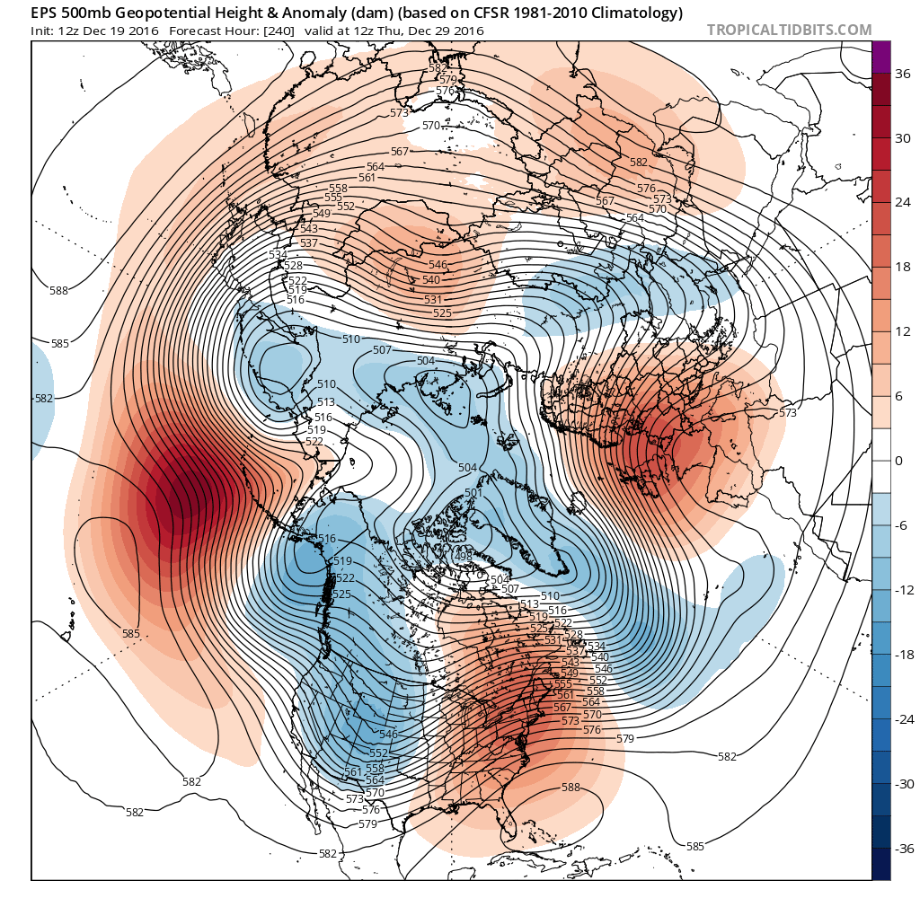 While we don't trust the computer guidance beyond 3 to 5 days, if the longer range ECMWF EPS is correct we could see a Wave 2 Pattern developing in the days after Christmas. Such a Hemispheric Pattern can suggest that Alaska and NW Canada reloads with very cold Arctic air with the potential of a cross Polar flow becoming established. Some of the Teleconnection indices suggest the upper air pattern could become favorable for delivering cold air once again just as 2016 ends and 2017 begins. We will see. Time to enjoy this warm weather while we have it. Winter is unfortunately far from over.