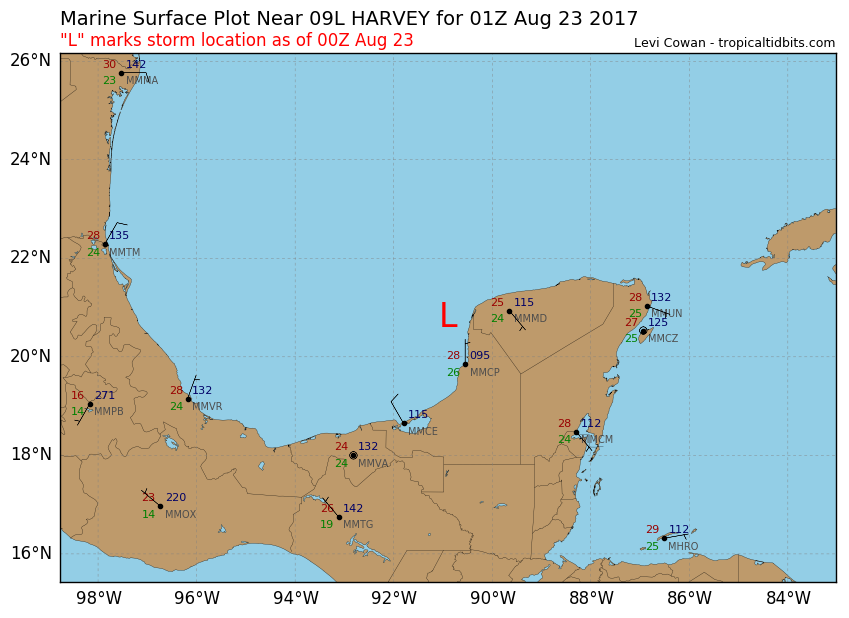 00Z update shows Harvey in the Southern Gulf. Early track and intensity guidance. Good night folks. Long days ahead it appears.