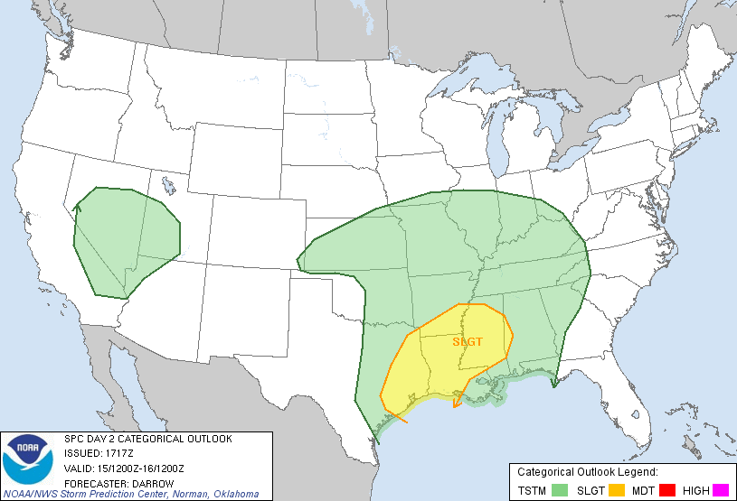 ...THERE IS A SLGT RISK OF SVR TSTMS ACROSS PARTS OF THE WRN/CNTRL