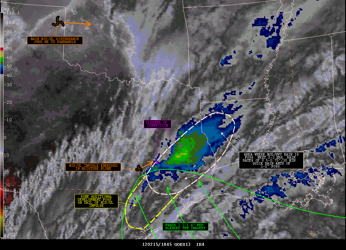 TERM OUTLOOK...WEAK MID/UL IMPULSE NOW OVER ERN TX IN WV IMAGERY SHOULD
