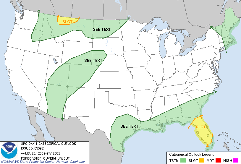 ...THERE IS A SLGT RISK OF SVR TSTMS OVER PARTS OF THE NRN PLNS...