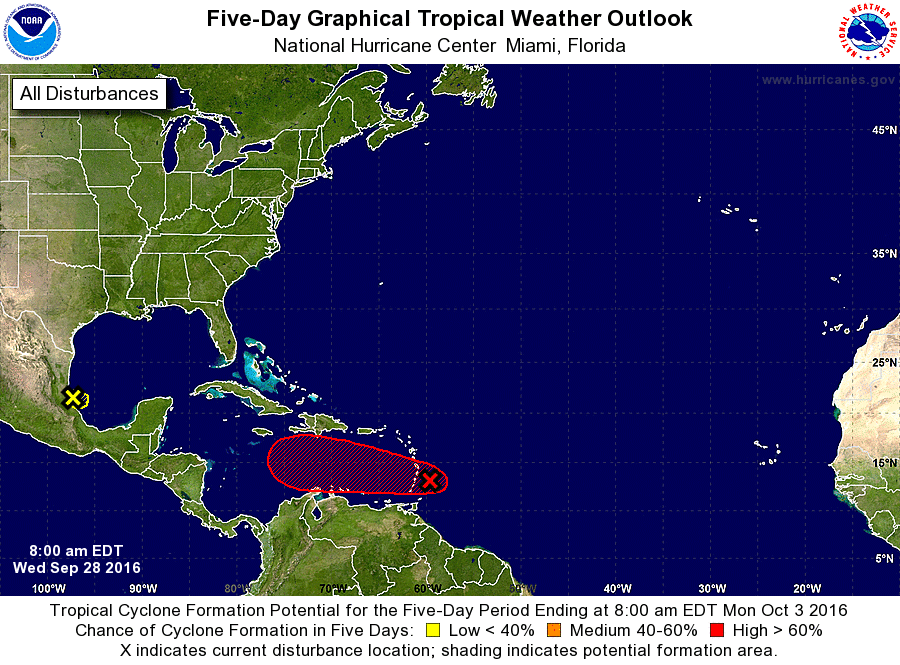 NHC will be initiating advisories on Tropical Storm Matthew, currently moving through the Windward Islands, at 11 AM EDT.