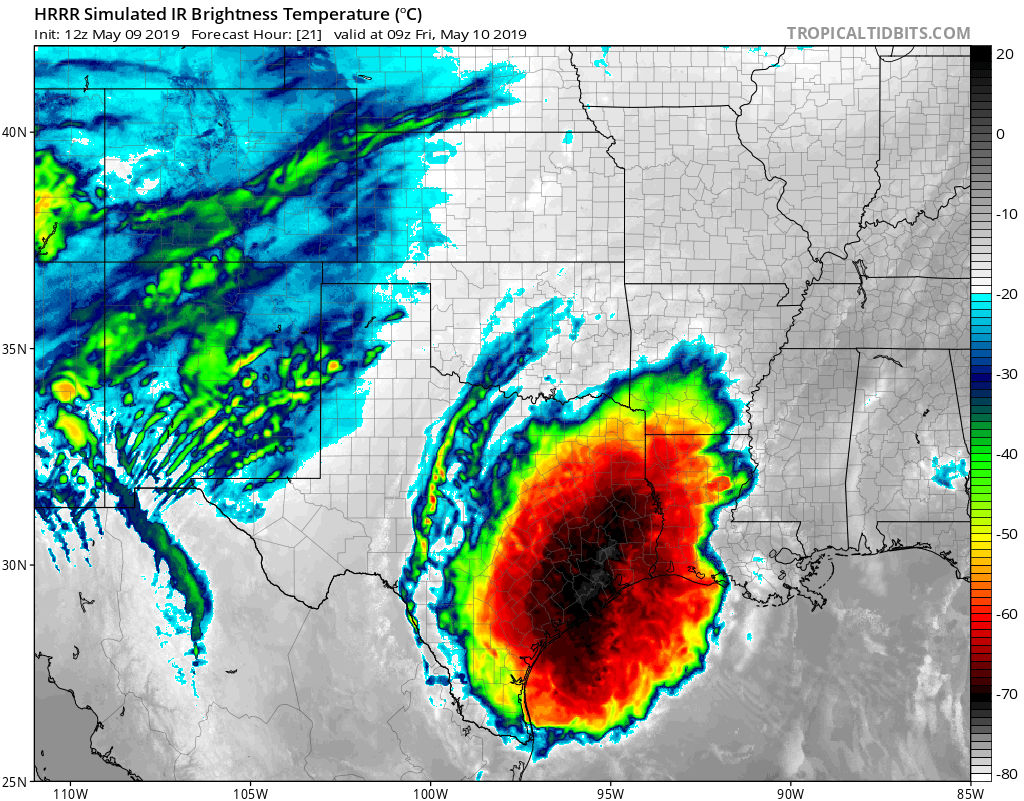 GFS is similar to the HRRR.stormlover wrote: ↑Thu May 09, 2019 11:07 am If gfs run is right but prob won’t be but who knows drops hammer on golden triangle