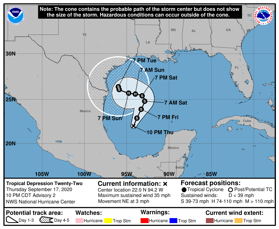 The NHC will begin Advisories for TD 22 at 6 PM