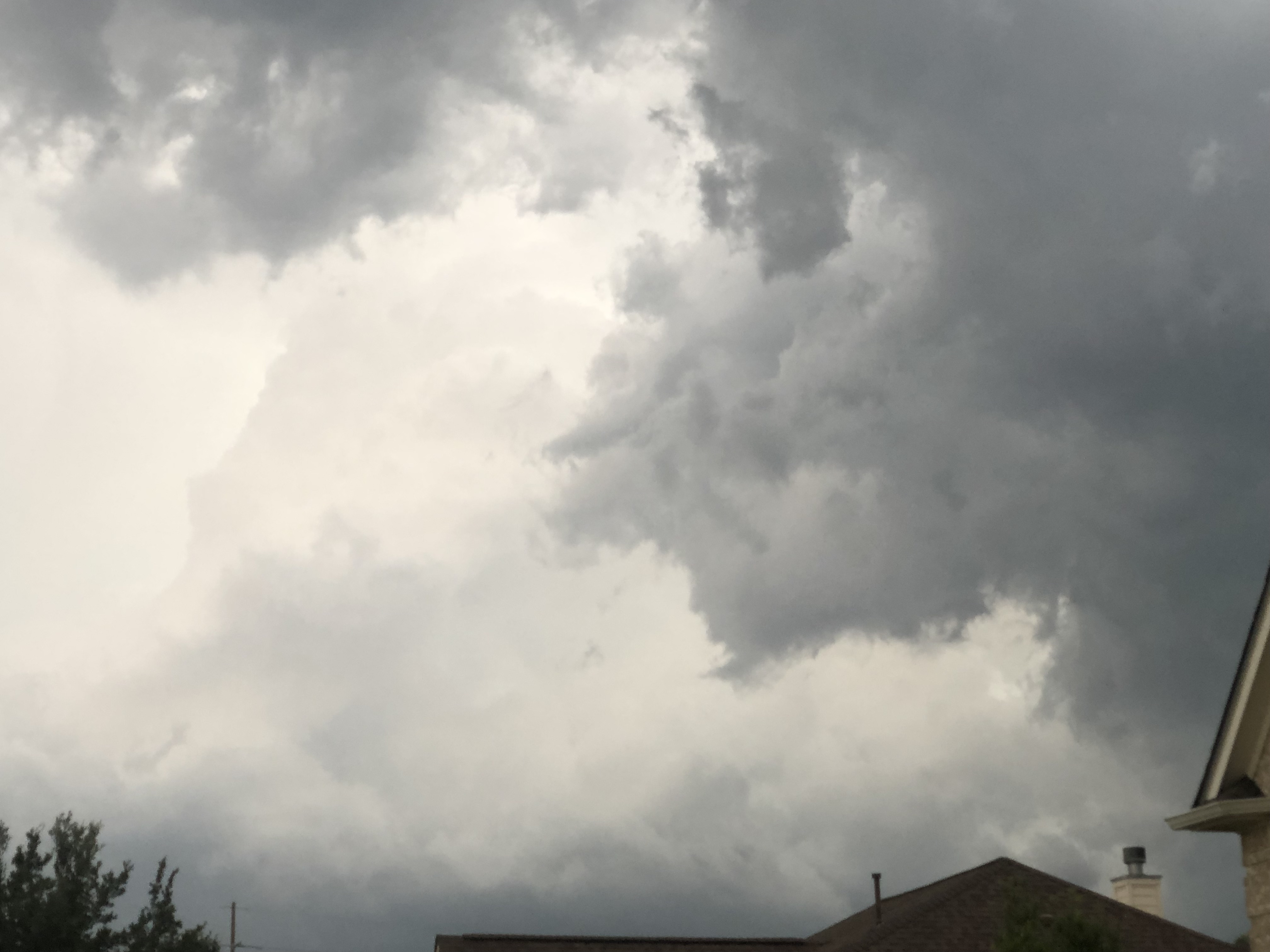 40-50 mph outflow as suspected. Not a drop yet, though. I was outside finishing getting a pile of dirt situated and preparing to reclaim a rose bed. The water main busted Monday evening. Could use come rain to flatten everything out. Good times!