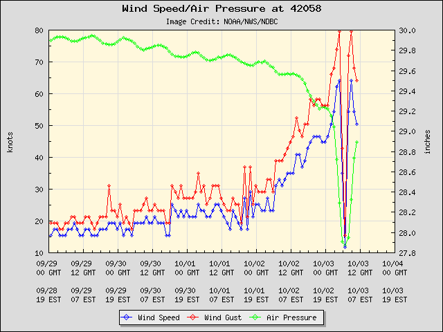 Data from an Air Force Hurricane Hunter plane a couple of hours ago