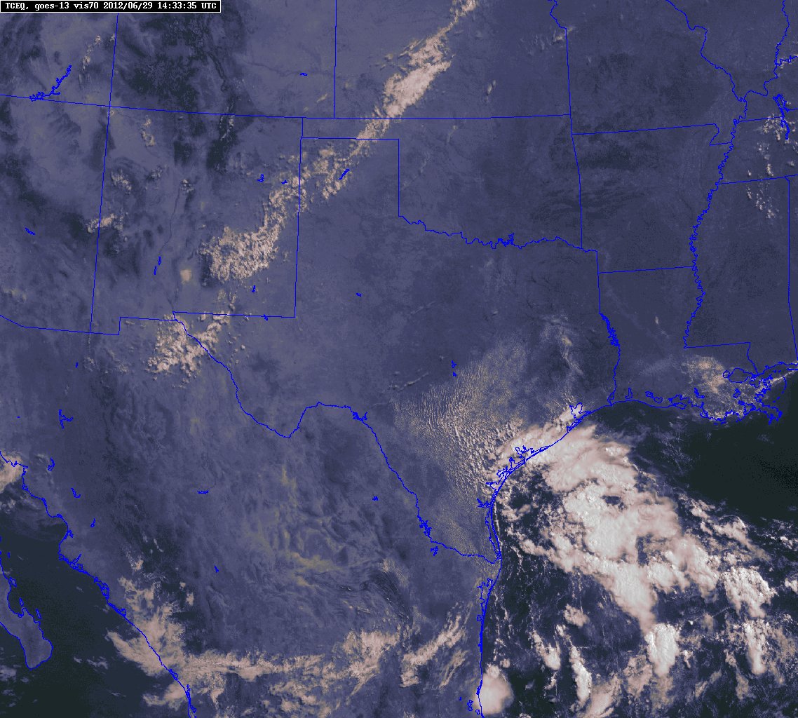 As is usual under such strong high pressure and weak wind fields, visible satellite images have shown a large mass of haze over the western and northwestern Gulf of Mexico and inland over much of TX. This is due to the fairly stagnant conditions that are common under large domes of high pressure in the summer months. This haze when combined with the daily pollution across the metro area will support high readings of ground level ozone this afternoon.