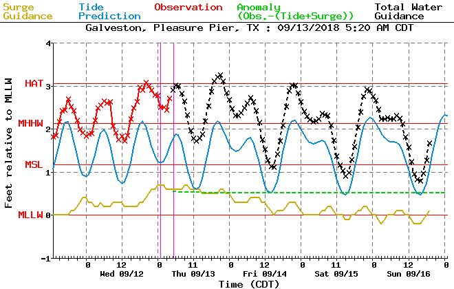 Tides will run about 1.0-1.5 feet above predicted levels along the coast with total water levels of 3.0-3.5 feet above MLLW which is generally below thresholds needed to cause issues along Bolivar, the west end of Galveston and along the west side of Galveston Bay.