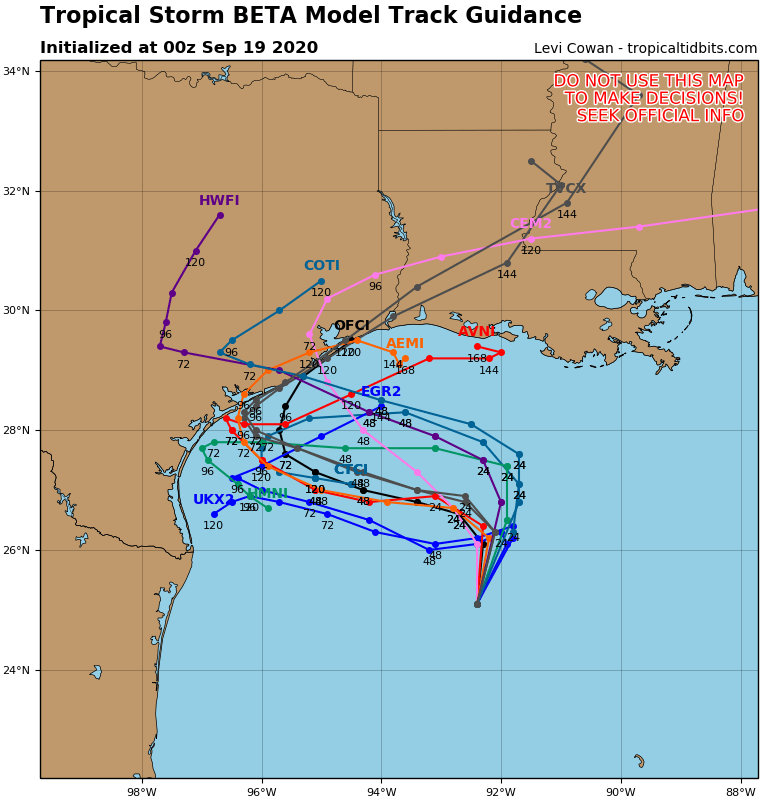 New tropical models notice how they have Beta now aimed at the middle Texas coast.