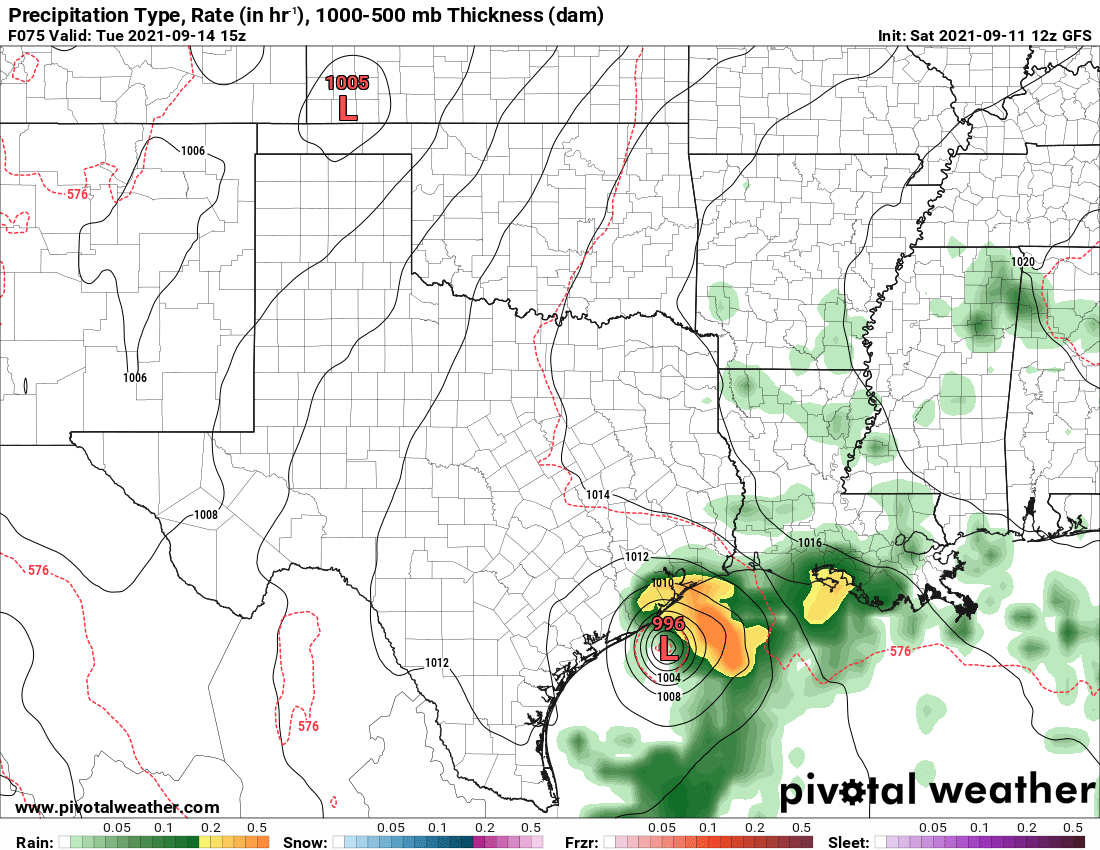 I think we might be the only two that even pays attention to that one. lol.weatherguy425 wrote: ↑Sat Sep 11, 2021 1:09 pm For the record, NHC experimental model HAFS-B (06Z), has a more concentrated circulation that previous runs; making initial landfall near Port O’Connor, then riding the coast up to San Luis Pass, then more northward over the general Houston Metro.