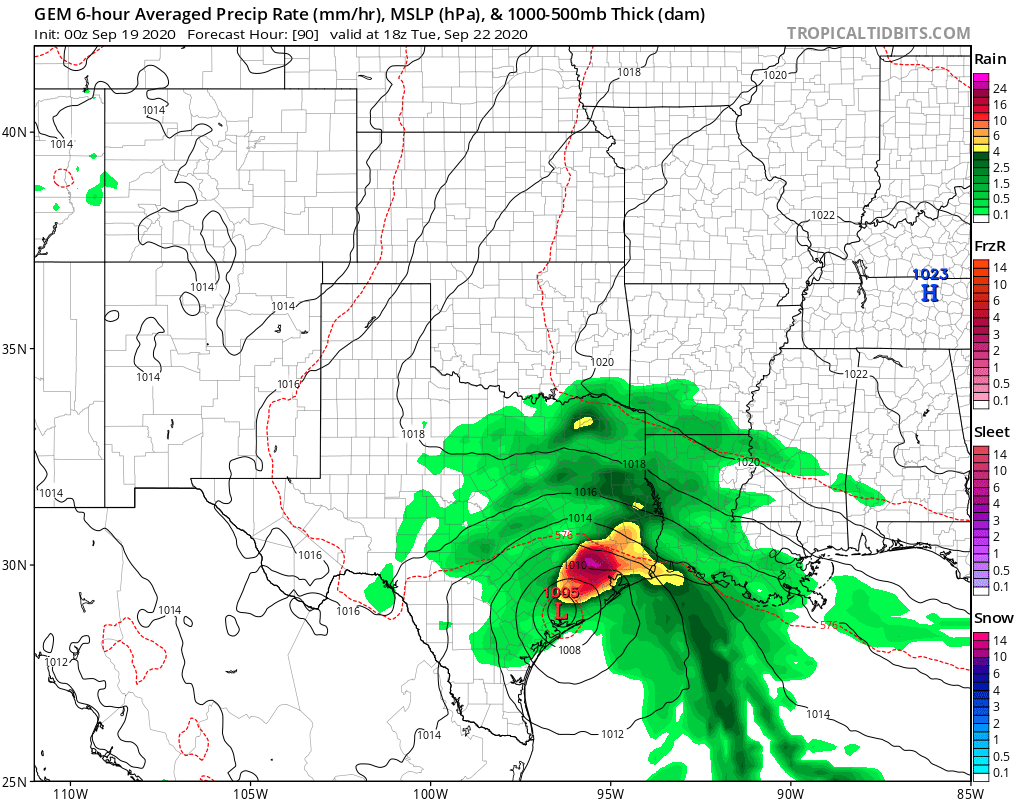 I’m also wondering about this too. The further north this gets could possibly mean less rain for us. If it goes in more towards Corpus Christi and then slowly crawls north then we’d obviously get more rain but if it goes in towards Matagorda and hugs the coast then we’d probably get less rain.