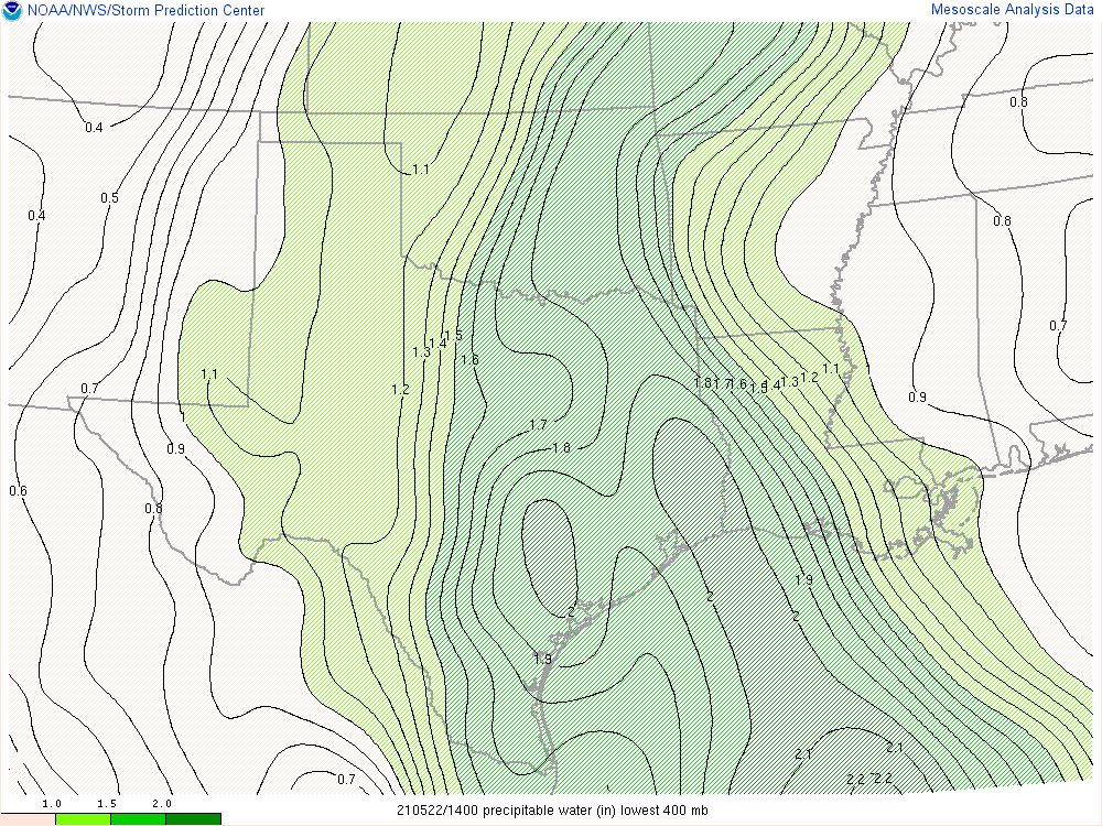 30-40 kts this morning. This will advect extremely high PW air