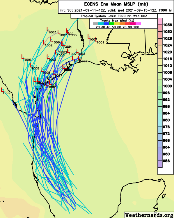 HAFS-B (NHC experimental model) came in a bit more organized with 94-L; upper-end tropical storm riding up the coast with an eventual landfall between Sargent and Galveston or so.