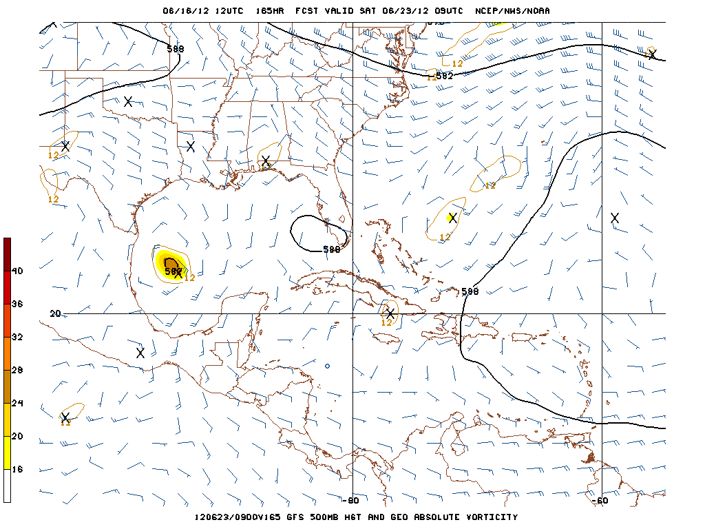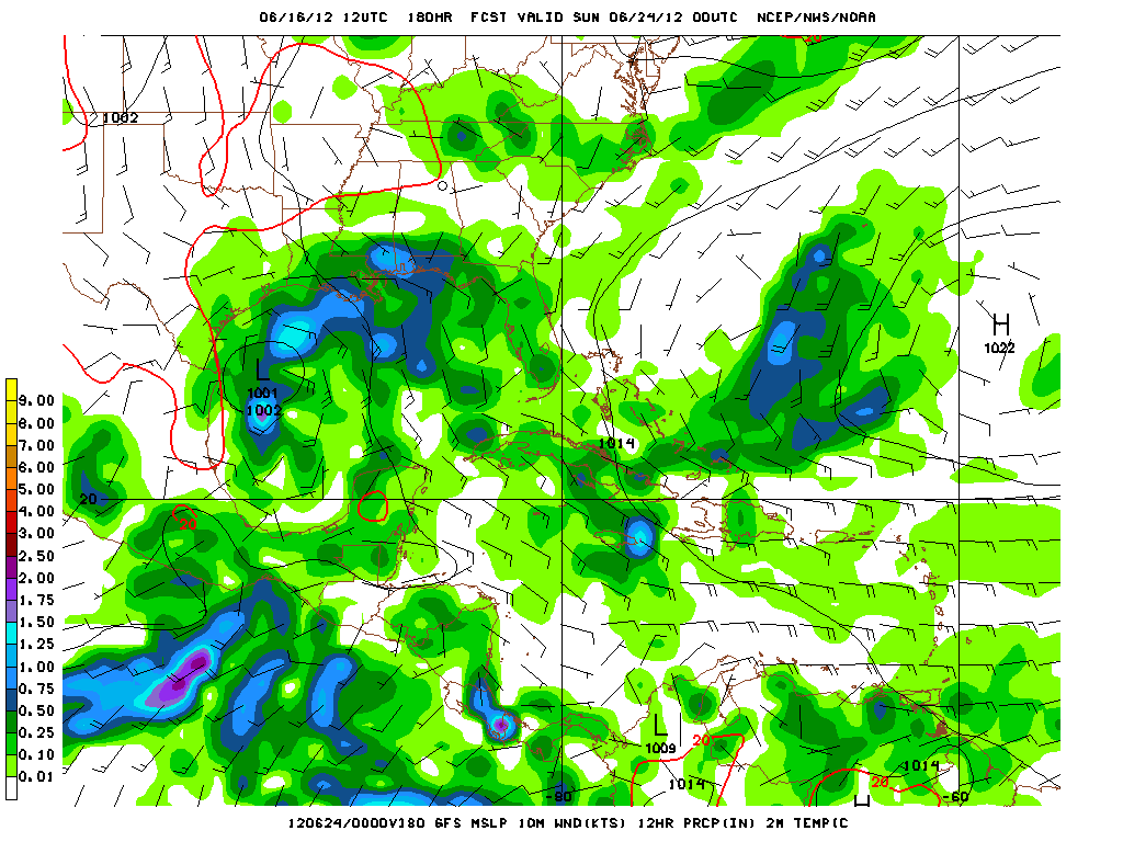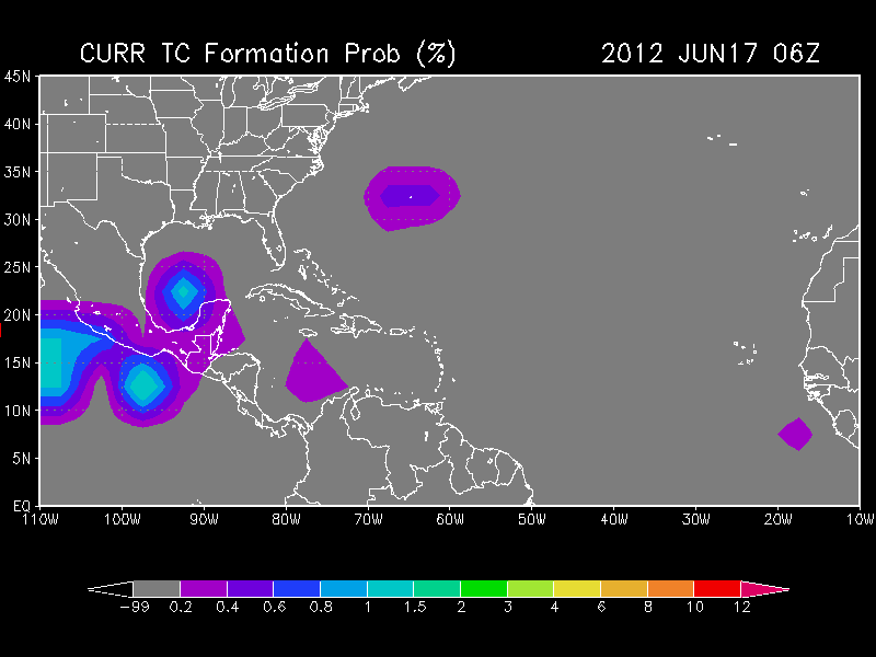 There is some speculation that the sole feature involved in developing the Bay of Campeche disturbance is the weak low pressure in the Western Caribbean. The models have been rather insistent that this will be a combination of events that include left over mid level vorticty from Carlotta in the EPAC crossing the Isthmus of Tehuantepec and the Western Caribbean wave of low pressure slowly consolidating into a broad surface low embedded with the monsoonal trough. The 12Z GFS suggests this today as well.