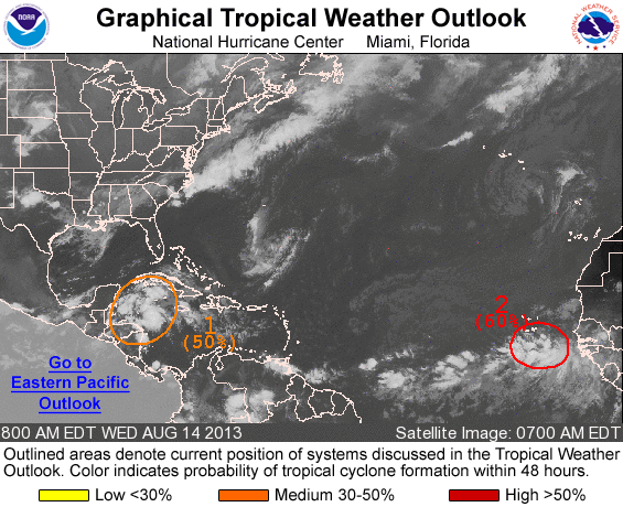 2. An area of unsettled tropical weather currently located across the Central Caribbean as well as energy emerging off the N W Coast of Venezuela will slowly organize and drift NW toward the Yucatan near Belize and Cozumel. At this time it does appear that conditions will become somewhat favorable for development as wind shear relaxes and the tropical disturbance gains some convection before moving across the Yucatan into the SW Gulf of Mexico/Bay of Campeche.