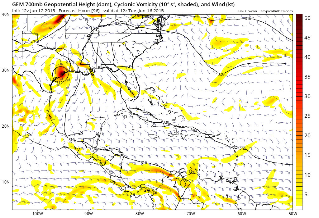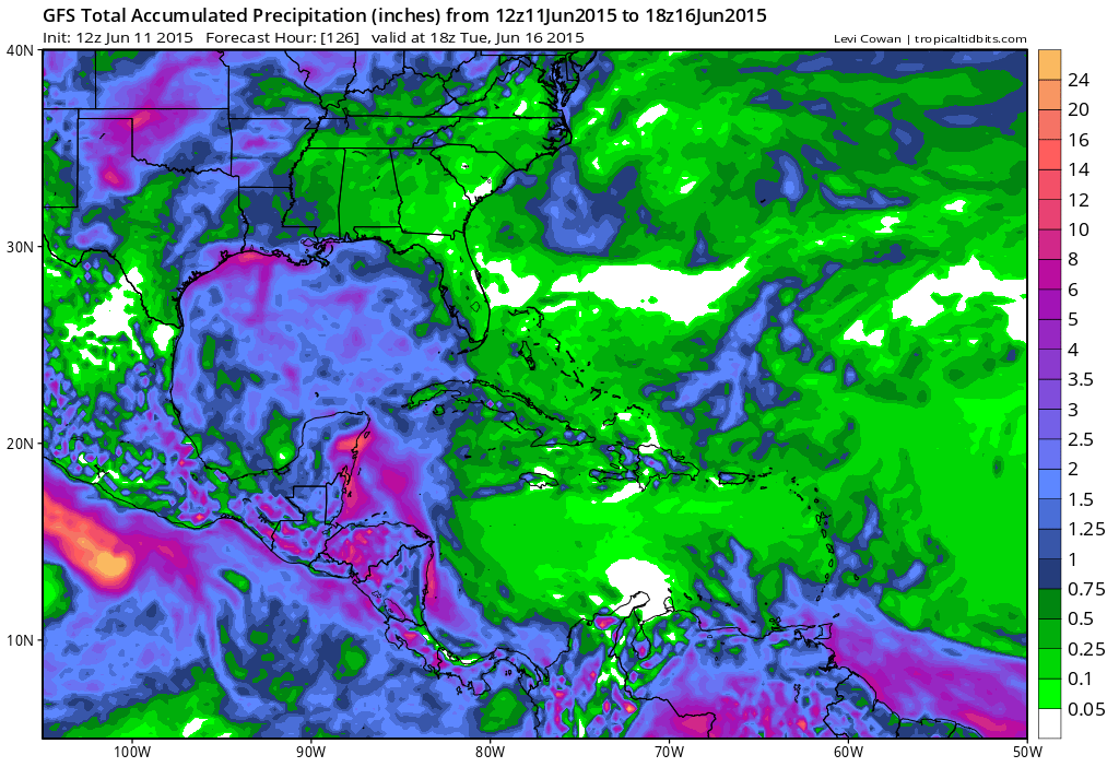 Well the 12Z GFS has thrown a bit of a curveball at us suggesting a weak tropical disturbance originating from the NW Caribbean moving NW over the weekend and nearing the Corpus Christi area early next week.